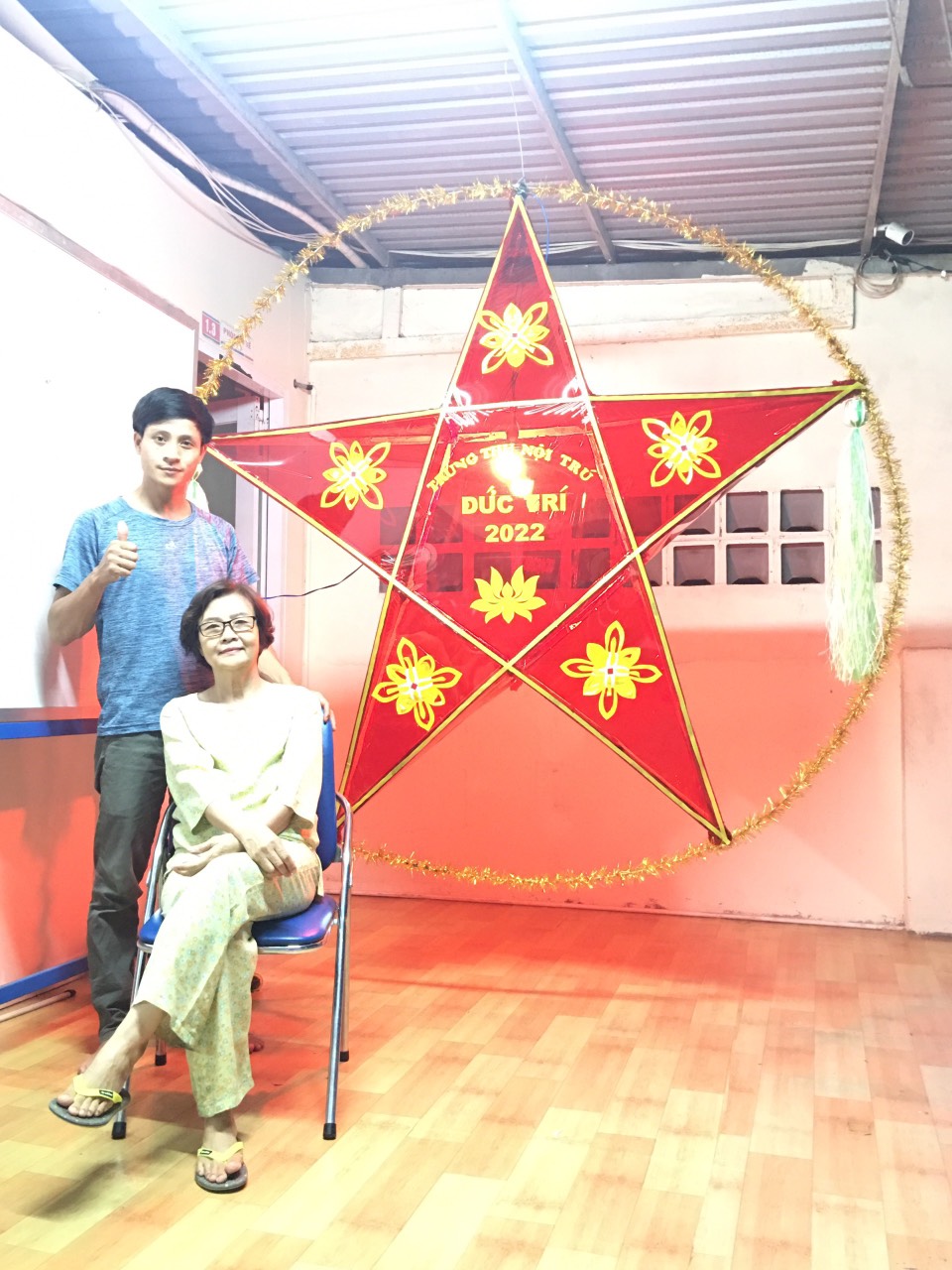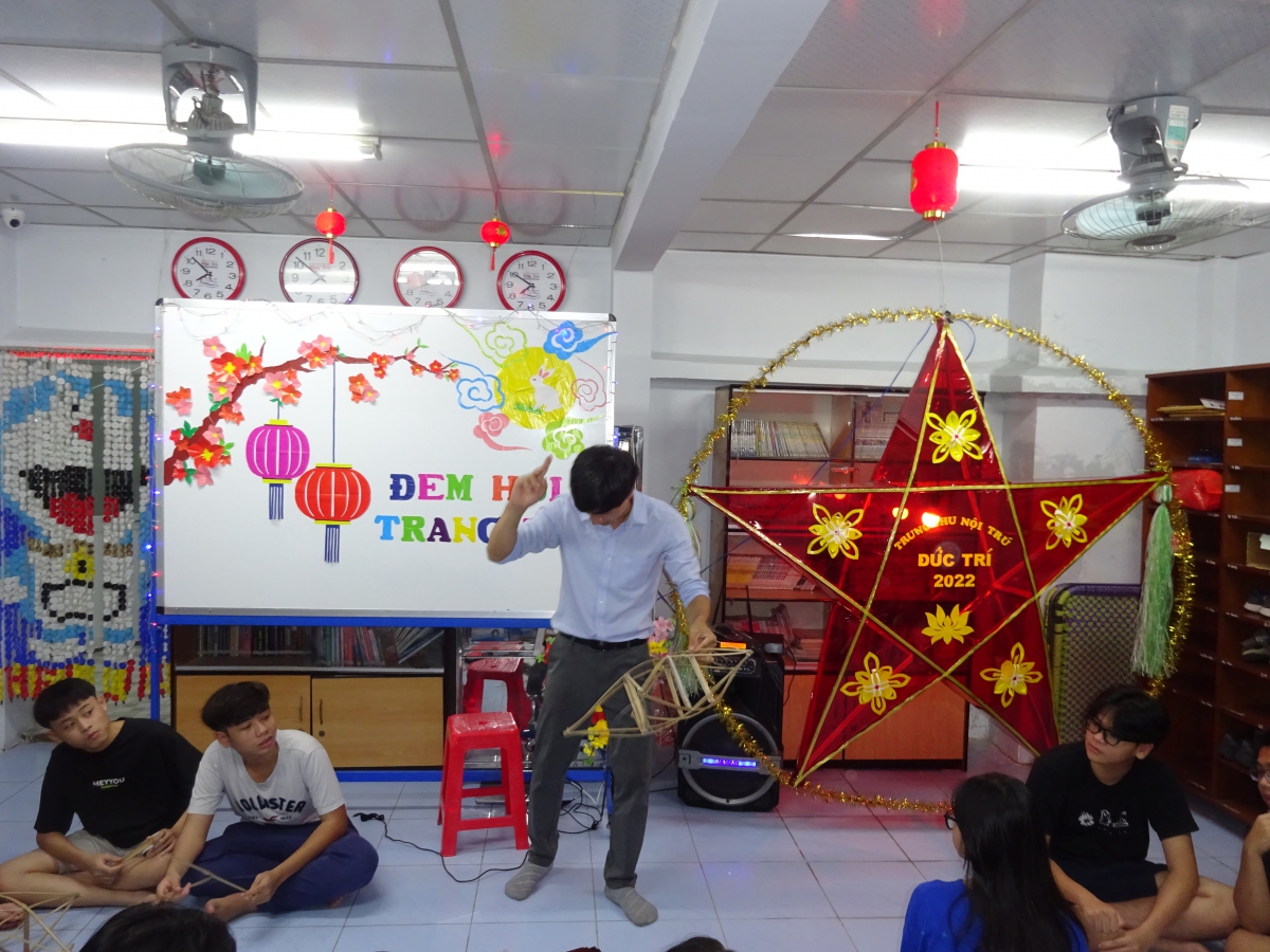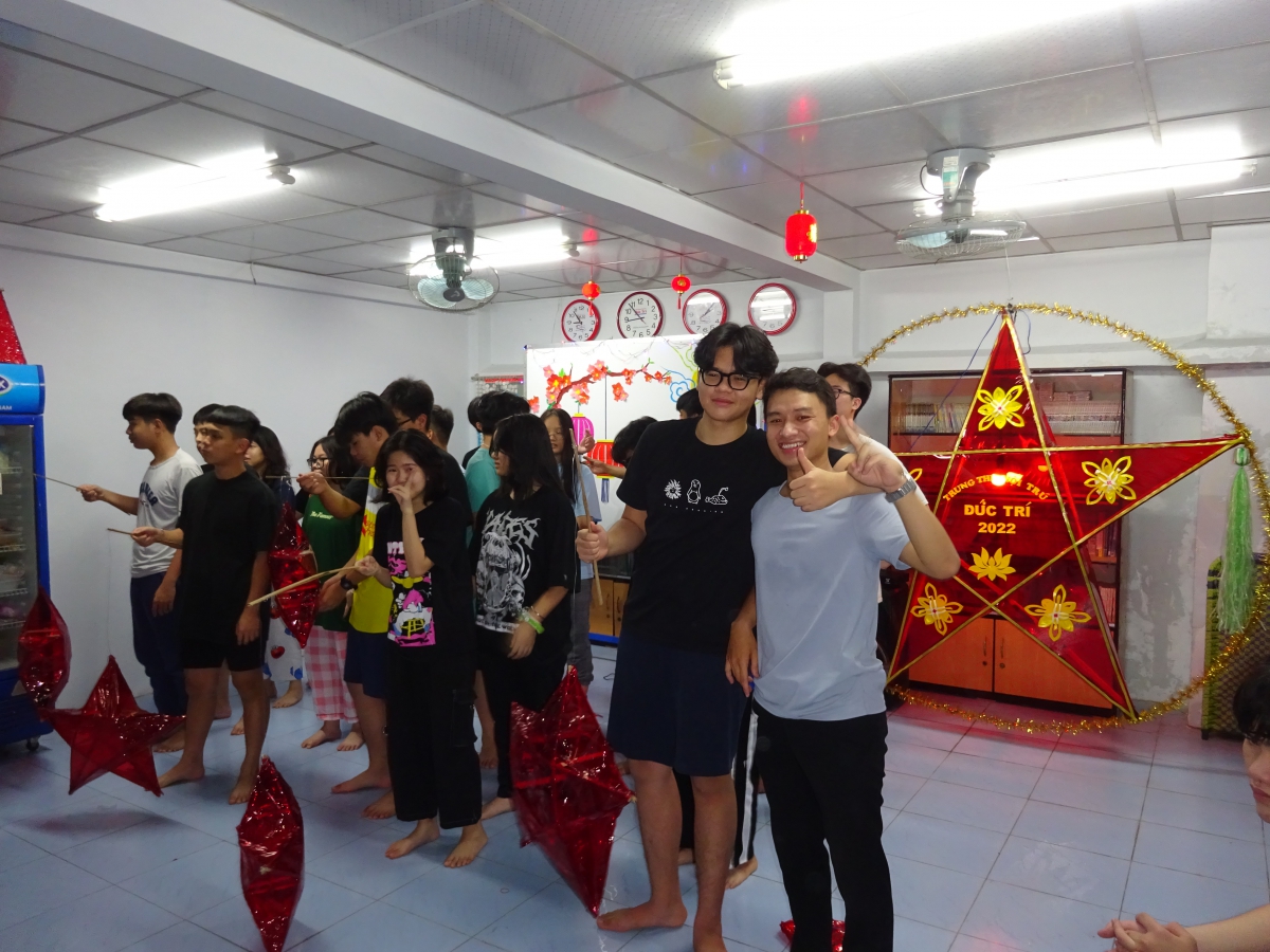- Một chiếc đèn ông sao siêu to khổng lồ được làm nên bởi đôi tay khéo léo, tấm lòng đong đầy yêu thương của thầy trò.
