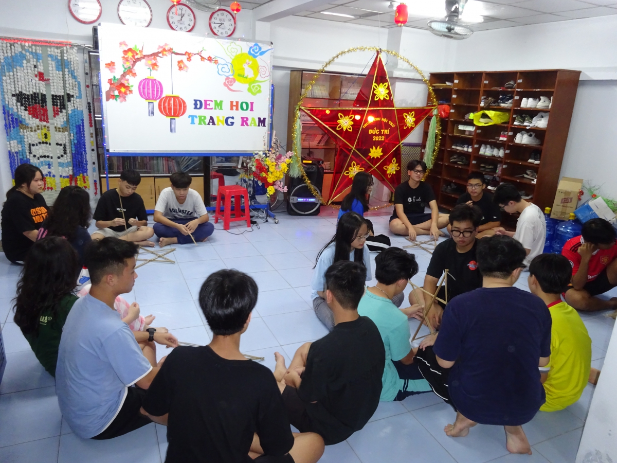 - Những giây phút tìm về vẻ đẹp truyền thống dân tộc khi cùng nhau thi làm lồng đèn.
