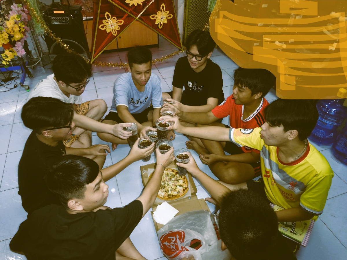 - Cuối buổi tiệc thì ta kết hợp truyền thống (bánh trung thu) với hiện đại (bánh pizza) và 1..2..3 zôôôô!
