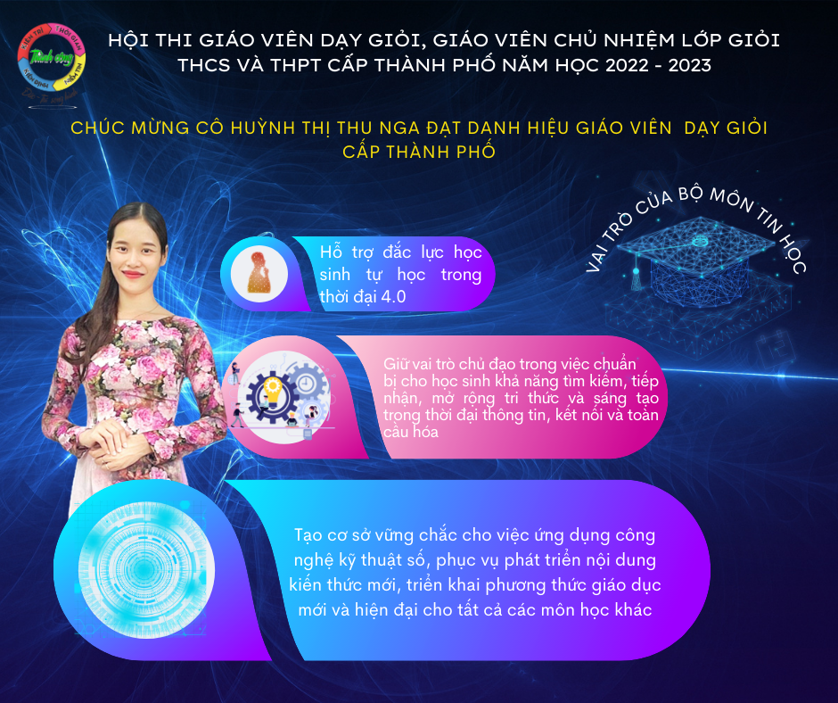 Cô Thu Nga là một giáo viên giỏi chuyên môn, cô còn được tín nhiệm chọn vào đội ngũ giáo viên cốt cán của bộ môn Tin học thành phố Hồ Chí Minh và có nhiều hỗ trợ tích cực cho giáo viên toàn thành phố trong các đợt tập huấn Chương trình giáo dục phổ thông 2018. Rất tâm huyết với nghề, cô Thu Nga chỉ rõ những vai trò quan trọng của bộ môn Tin học: