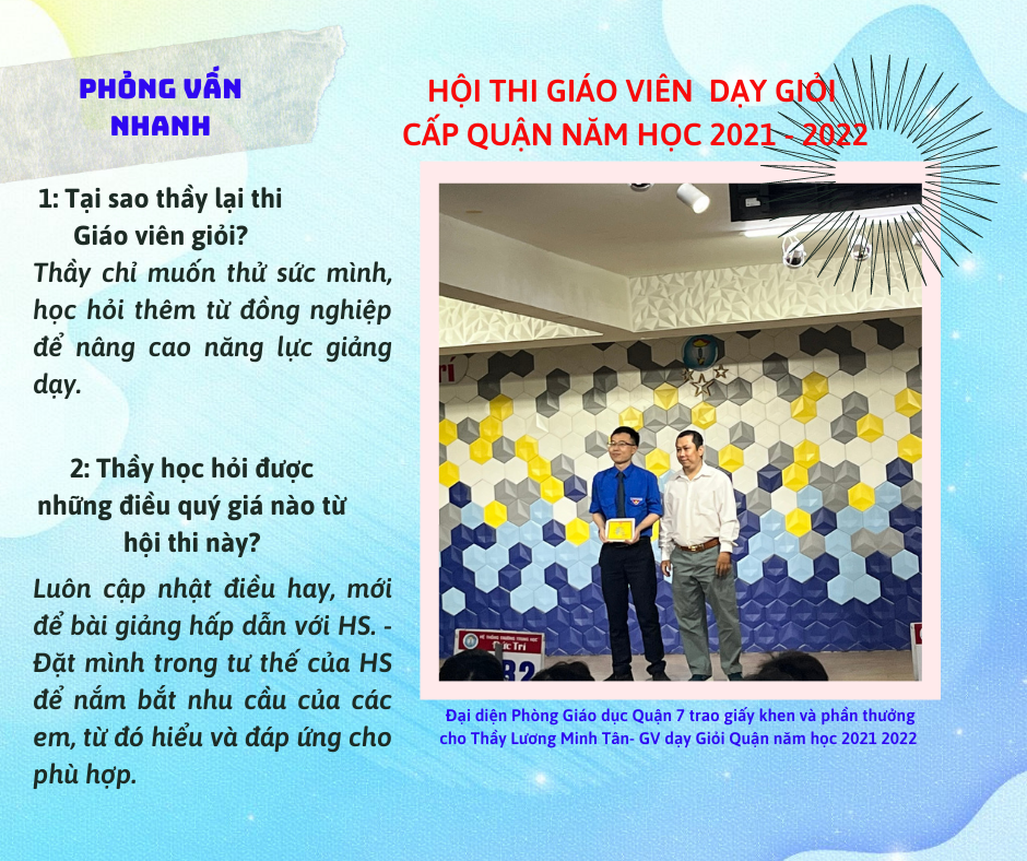 Chúc mừng thầy Lương Minh Tân đạt danh hiệu Giáo viên giỏi cấp Quận năm học 2021 - 2022.