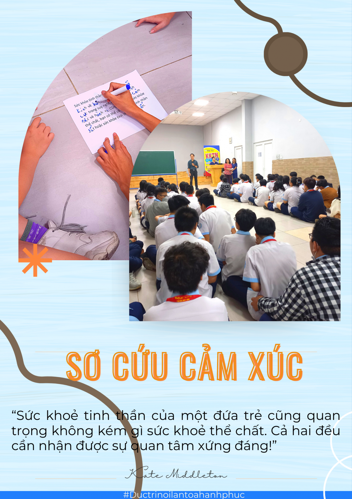 Tuần qua, lớp 9B1 và 9B2 đã được sinh hoạt một nội dung bổ ích và thiết thực: Kỹ năng An toàn cho trẻ em, chuyên đề " Sơ cứu cảm xúc". Đây là hoạt động mà trường Đức Trí phối hợp với Tổ chức Giáo dục sức khỏe Wellbeing thực hiện.