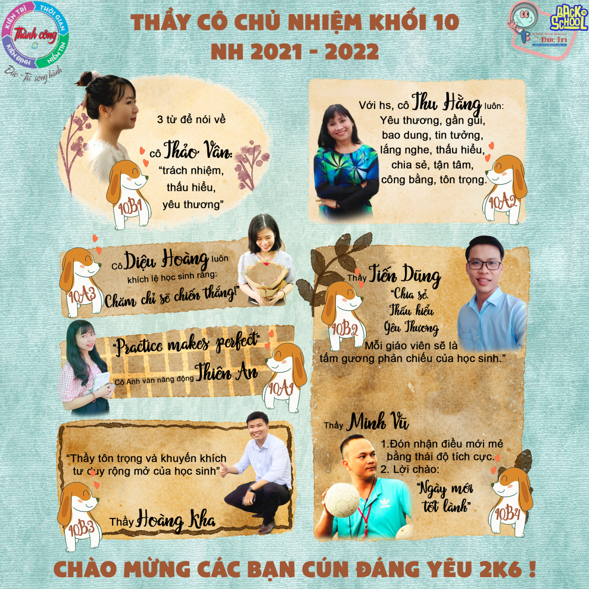 Sài Gòn chưa khỏe hẳn, mình chưa đến trường được thì gặp nhau online em ha. Chúng mình yên tâm vì công tác bồi dưỡng, đào tạo đội ngũ giáo viên chủ nhiệm là điều luôn được trường Đức Trí chú trọng. Mỗi giáo viên được chọn chính là người phù hợp nhất với lớp học đó. Thầy cô chủ nhiệm khối 10 xin chào các bạn gà chiến đáng yêu 2k6 nhé!