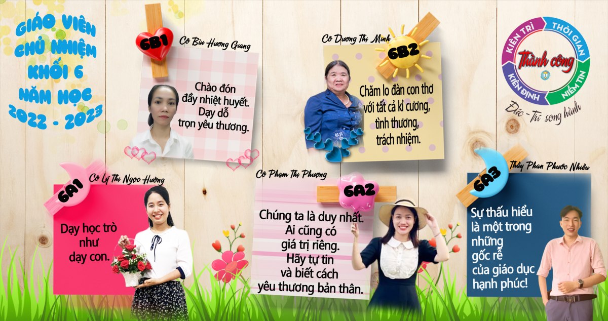 ![]() | Chào đón các bé học sinh măng non khối 6 gia nhập đại gia đình Đức Trí. Chăm sóc các con trong năm học này là những thầy cô giàu tâm huyết: Lớp 6B1: Cô Bùi Thị Hương Giang Lớp 6B2: Cô Dương Thị Minh Lớp 6A1: Cô Lý Thị Ngọc Hường Lớp 6A2: Cô Phạm Thị Phượng Lớp 6A3: Thầy Phan Phước Nhiều Chúc các con một năm học thật nhiều yêu thương và phát triển! |