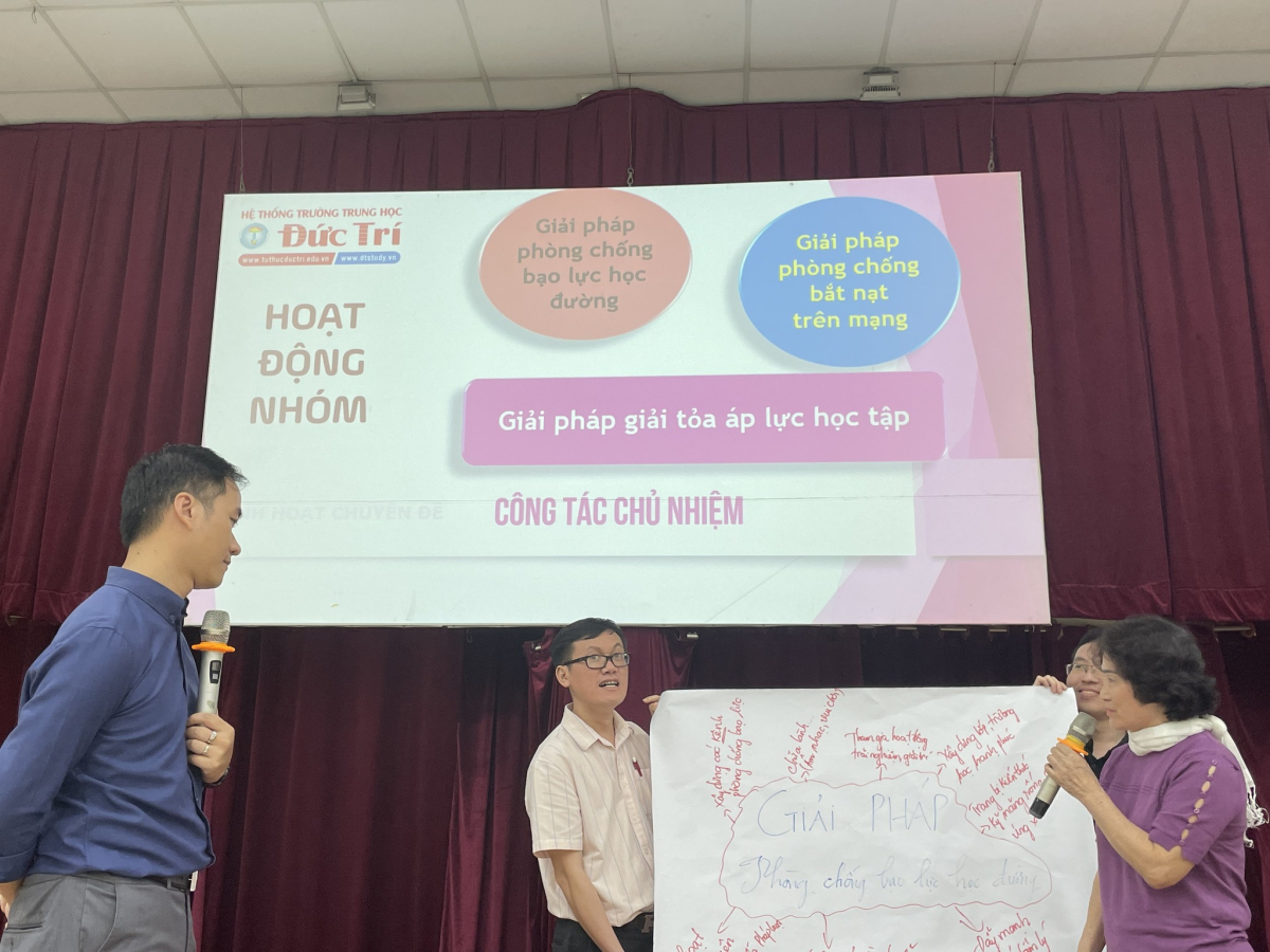 Nhằm chia sẻ những kinh nghiệm quý báu trong công tác chủ nhiệm, cùng nhau xây dựng một môi trường học đường an toàn, trường Đức Trí đã tổ chức sinh hoạt chuyên đề công tác chủ nhiệm về phòng chống bạo lực học đường và giải tỏa áp lực học tập cho học sinh.
