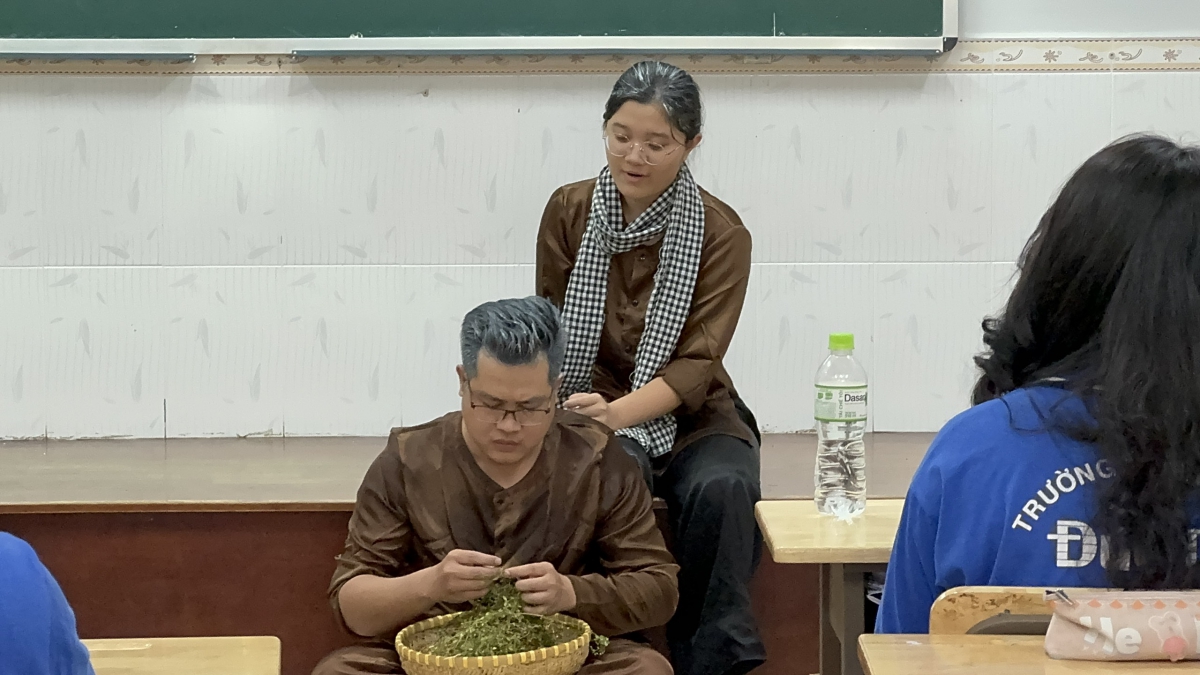 Mở đầu tiết dạy, thầy cùng học sinh lớp 11B1 hóa thân thành chị hai Nghĩa và cậu ba Ân. Trong một lần về quê thăm quê của cậu ba, hai chị em đã có dịp hàn huyên tâm sự lại những kỉ niệm về ngày tháng vắng bóng tình thương ba má và cùng nhau trưởng thành. Trong giai điệu ngọt ngào, chị hai đã ra đi mãi mãi vì bệnh phổi lâu năm : “Xin sống lại tình yêu đơn sơ. Rong chơi những ngày đầu chừa ba vá miểng vùa…. Dạo quanh, khung trời kỷ niệm. Chợt thèm rau đắng nấu canh.”