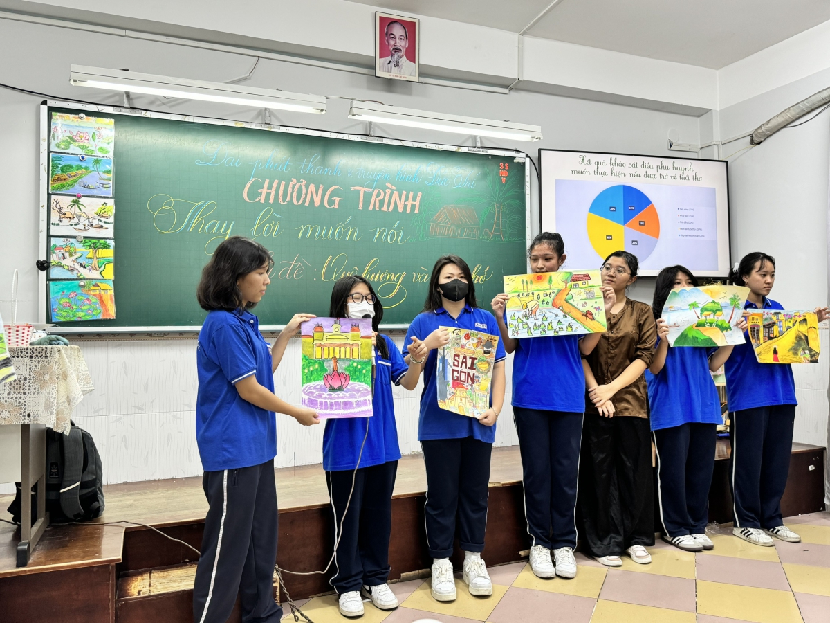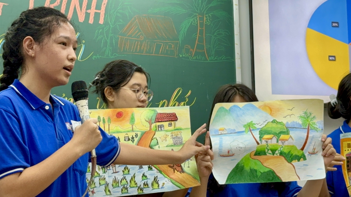 Kết thúc buổi học, các em học sinh giới thiệu những bức tranh phong cảnh quê hương 3 miền Bắc – Trung – Nam do chính các em thực hiện và trình bày cảm nhận của bản thân. Cho dù là miền ngược hay miền xuôi, thì quê hương vẫn luôn in sâu trong trái tim của con người Việt Nam, đó là nguồn cội, là nơi nuôi dưỡng tâm hồn và cũng là chốn bình yên để con người quay trở về sau những tháng ngày lo toan cuộc sống.