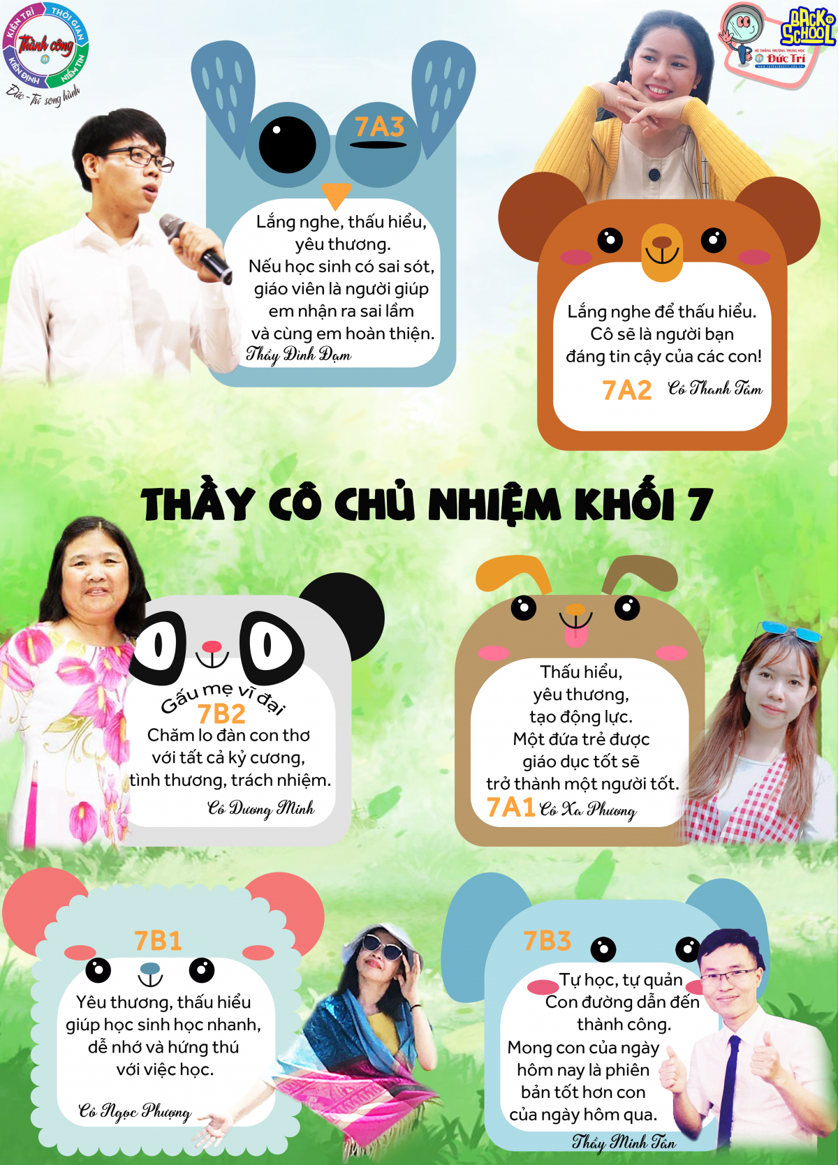 Nhìn tấm hình dễ thương cưng xỉu này là biết các THẦY CÔ CHỦ NHIỆM KHỐI 7 sẽ chăm sóc, nâng niu các bạn nhỏ khối 7 thật chu đáo với một phong cách rất dễ thương rồi nè. Thầy cô Đức Trí ghi nhớ lời dạy của thầy Nguyễn Văn Hiếu - Giám đốc Sở Giáo dục và Đào tạo thành phố HCM: “Nếu như bác sĩ, quân đội là lực lượng tuyến đầu trong phòng chống dịch thì các thầy cô cũng là lực lượng tuyến đầu “rẽ sóng COVID” đưa tri thức đến với học sinh. Hơn bao giờ hết, vắc xin cho năm học mới là vắc xin của trách nhiệm, yêu thương, của những đôi bàn tay đưa ra dìu dắt...”
