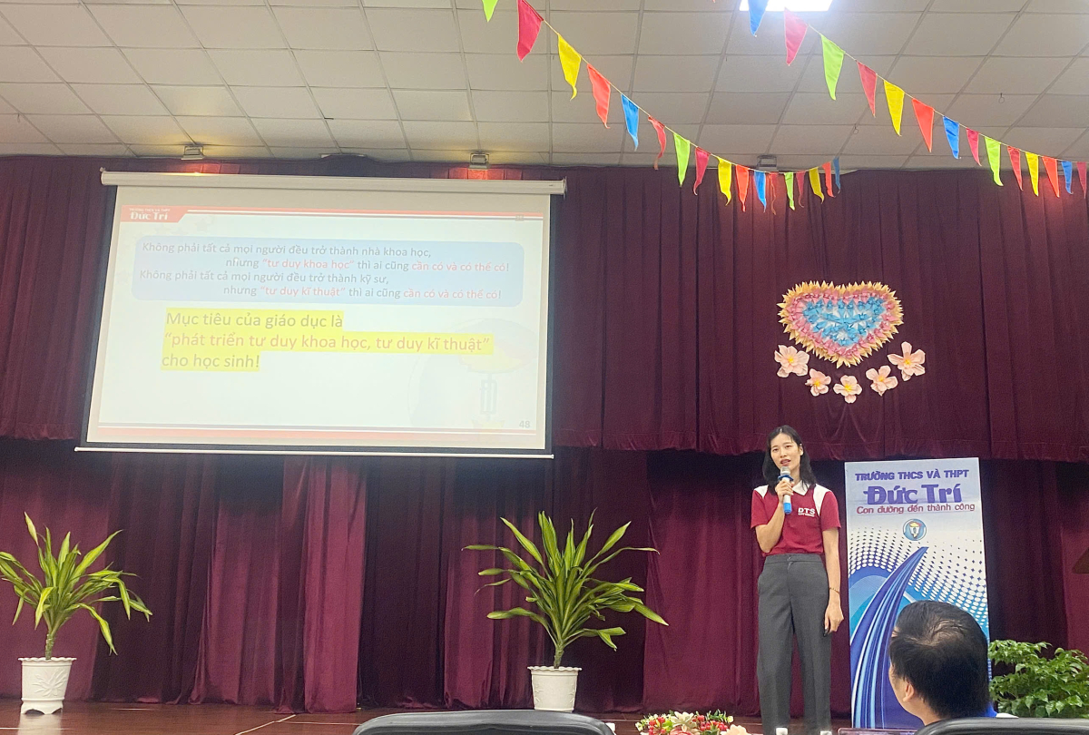 Bên cạnh đó, trường Đức Trí cũng hưởng ứng bằng các hoạt động thiết thực khác: xây dựng và triển khai kế hoạch tổ chức Tuần lễ, tổ chức các lớp tập huấn, hội thảo nâng cao chuyên môn, đặc biệt là kỹ năng sử dụng công nghệ số vào giảng dạy. Ngay trong buổi phát động tuần lễ hưởng ứng học tập suốt đời, nhà trường đã tổ chức chuyên đề “Xây dựng kế hoạch giáo dục phát triển năng lực số cho học sinh” đầy hiệu quả.